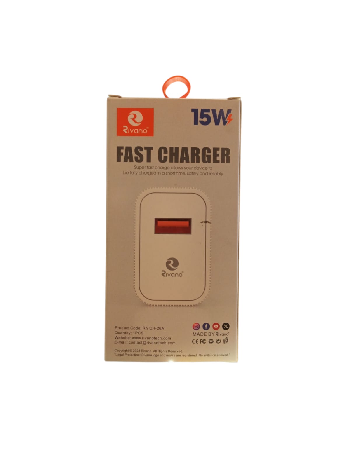 RIVANO FAST CHARGER 15 WATT WITH USB to MICRO CABLE